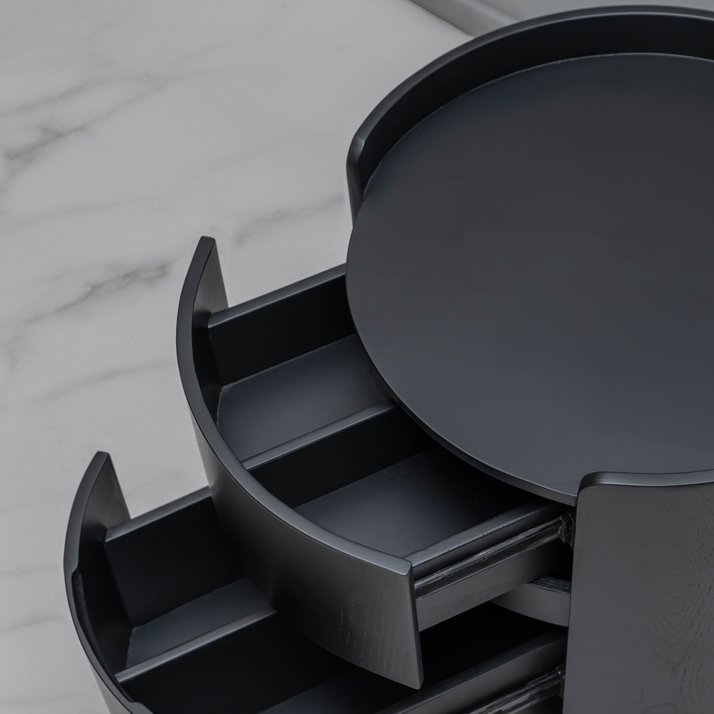 The Circa Trolley is a modern storage solution designed to keep your workspace organized and streamlined. Featuring a rounded silhouette and two smooth sliding drawers with dividing compartments, it provides convenient access to tools and supplies while keeping everything neatly separated.