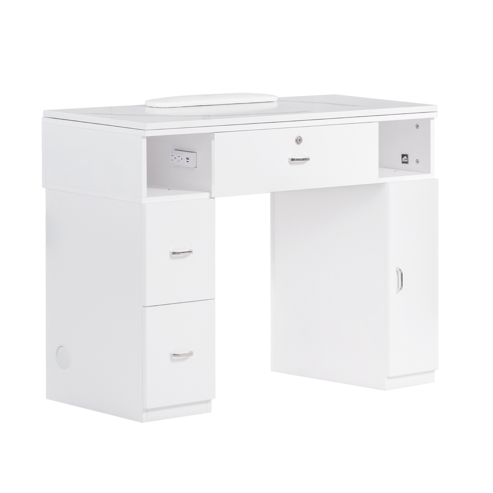 The Mira Manicure Table is thoughtfully designed to bring comfort, functionality, and a modern look to any salon space. With an increased tabletop width, it offers more room for technicians to work efficiently. The adjusted height allows stools to fit neatly underneath, creating a more comfortable and streamlined setup.