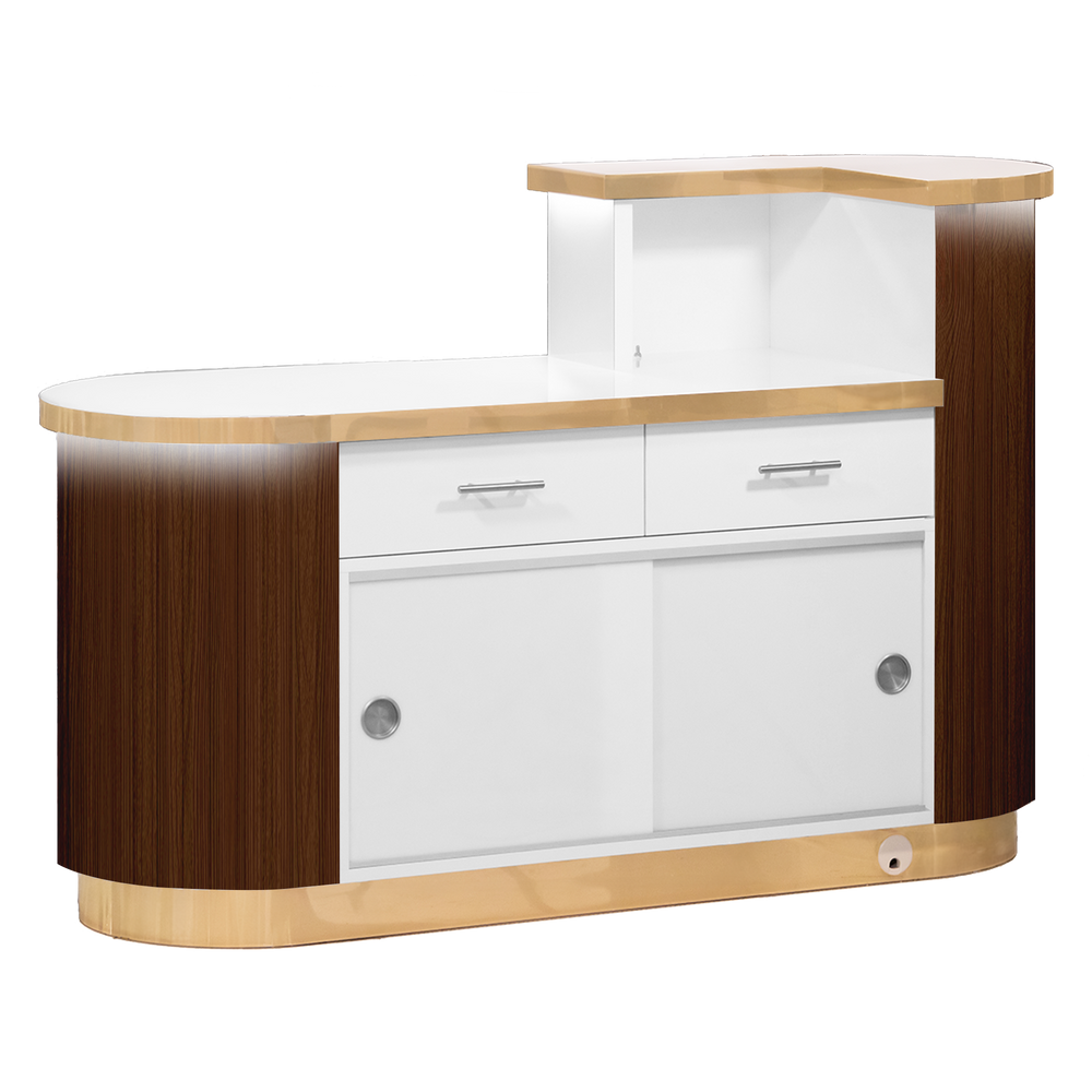 Make a great first impression with this stylish wood slat reception desk, designed to add both elegance and function to your salon or spa. The curved design offers a sleek, modern look, while the premium wood slats provide texture and warmth. Finished with your choice of trim color for a touch of luxury, it also features built-in LED lighting that creates a soft, inviting glow—enhancing both the design and ambiance of your space.